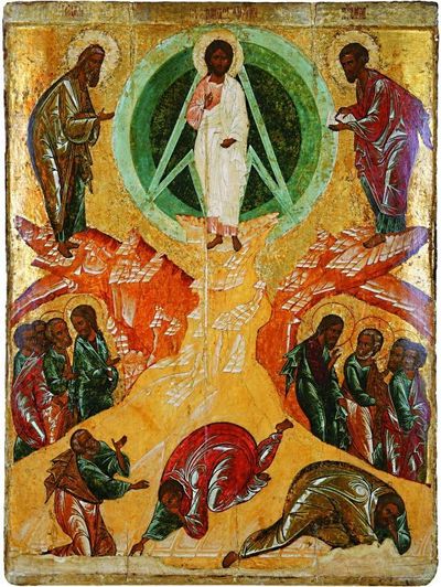 In His Transfiguration, our Lord Jesus Christ reveals the unseeable Father. The canon states it this way. “…on Mount Tabor Thou didst show us the burning ember of divinity, which burneth up sins and enlighteneth souls;” The Uncreated Divinity which had been revealed before, in shadowy form to Moses, on the mount of the law, in the overshadowing glory in the tabernacle of old, in the pillar of fire and cloud in the wilderness, was revealed in the Person of Jesus who was bathed in and from whom emitted the unapproachable light of the Godhead. The revelation of the Transfiguration of Christ God confirmed that the same man who ascended the mountain with His disciples was established also as the One who had “…existed from before the beginning of time”. Again, from the canon “Moses and Elijah cried to the disciples who were being instructed on holy Mount Tabor: “Behold, Christ the Savior is the God Whom we proclaimed of old!” And a thing is confirmed in the mouth of witnesses!